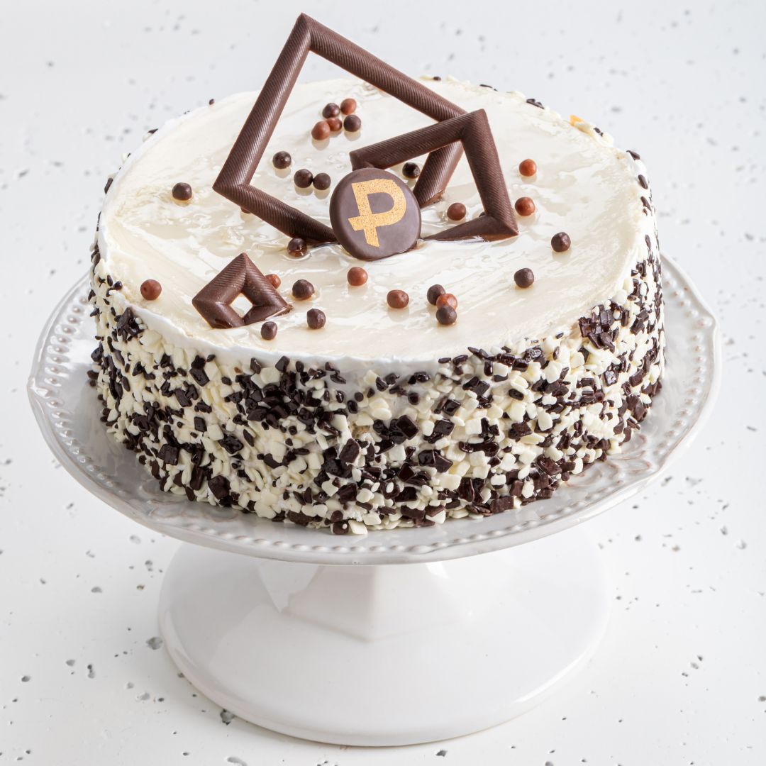 Połączenie delikatnego biszkoptu czekoladowego z musem z białej czekolady na bazie crème anglaise.